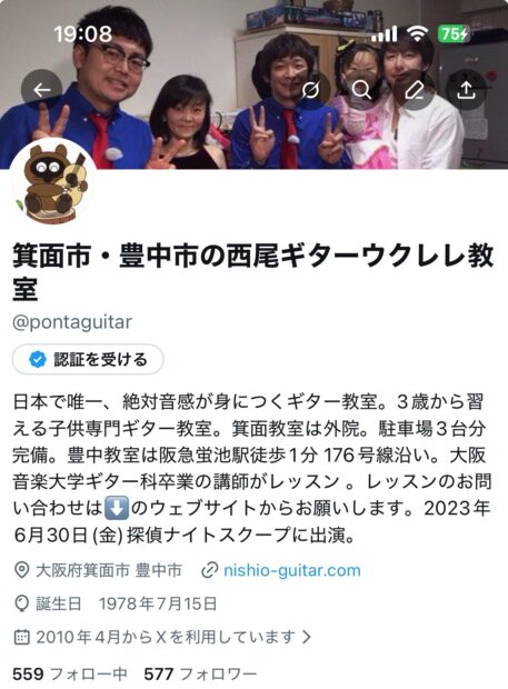 2010年から15年間使用していた西尾ギターウクレレ教室のX(旧Twitter)アカウントを削除しました。