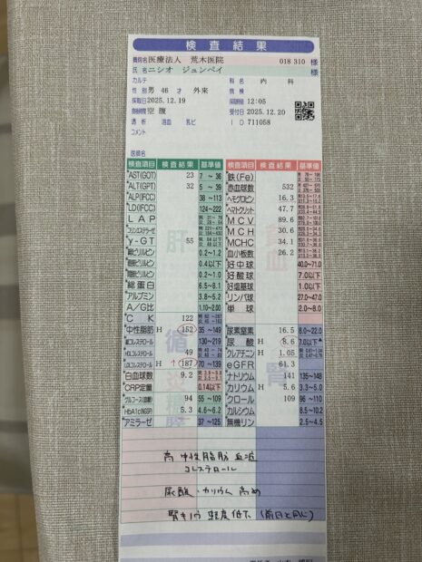 12月に体調を崩し、病院で血液検査をして頂きました。