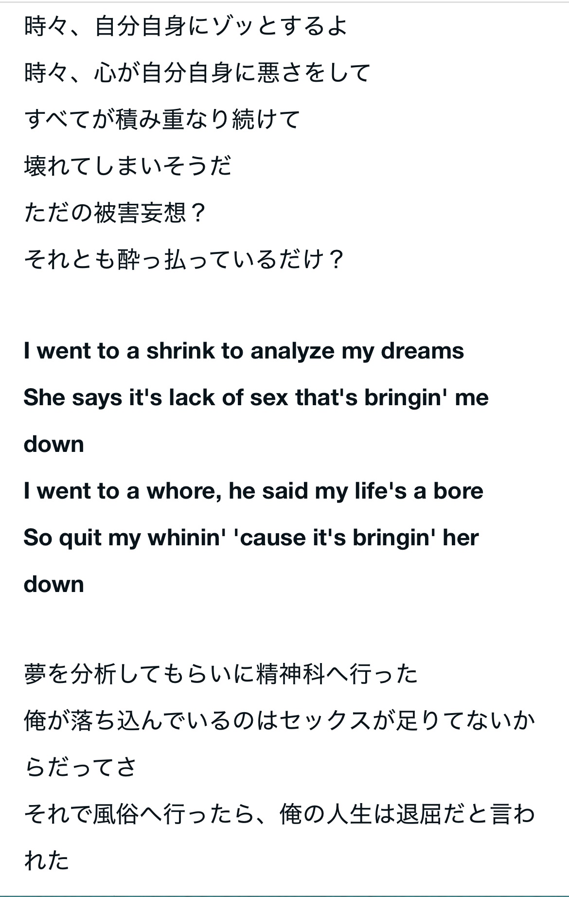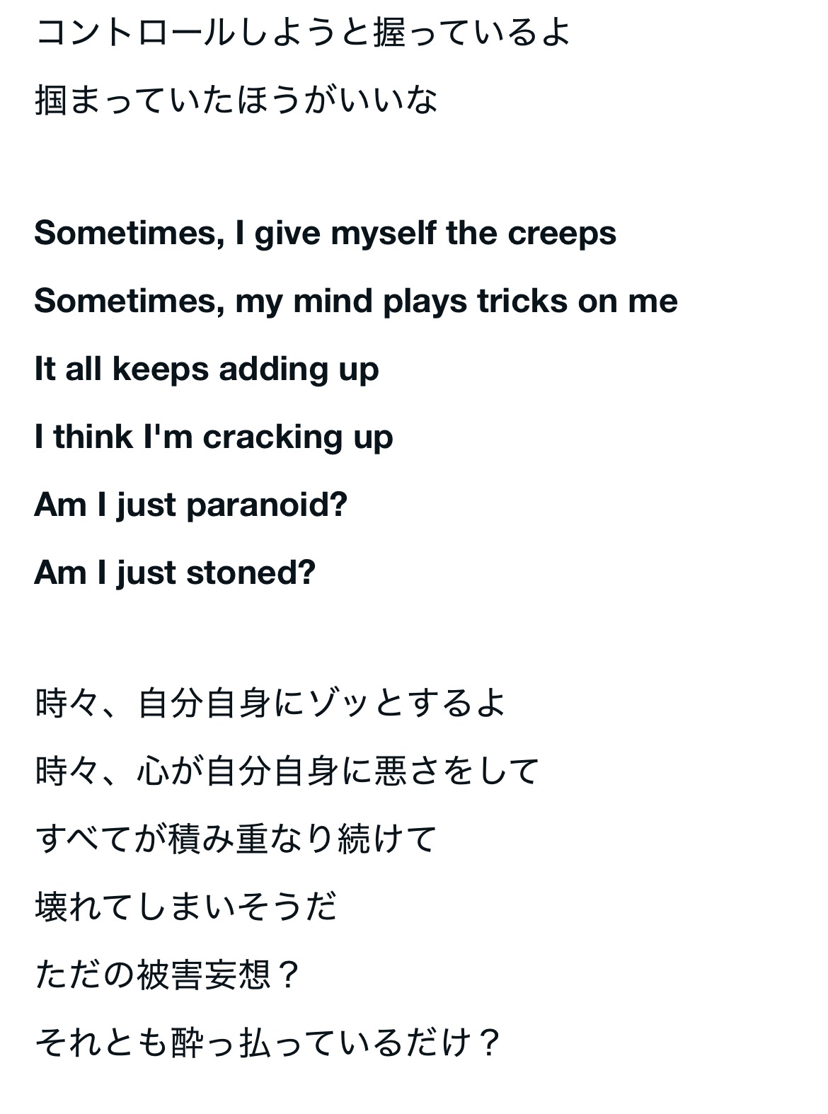 最近、この曲の歌詞を訳してみると、かなり病んでる曲だと分かり、私自身にも通ずる所があり、気に入って練習してみました。