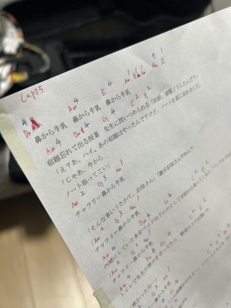 なんで嘉門達夫やねん!と思いましたが、Rくんがどうしてもこの曲を弾き語りしたいと仰ったので鼻から牛乳をレッスンしました。