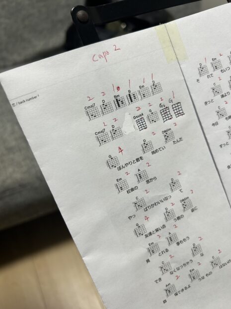 コードの種類が多く、押さえ方やコードチェンジに工夫が必要な、実は少し難しい楽曲です。