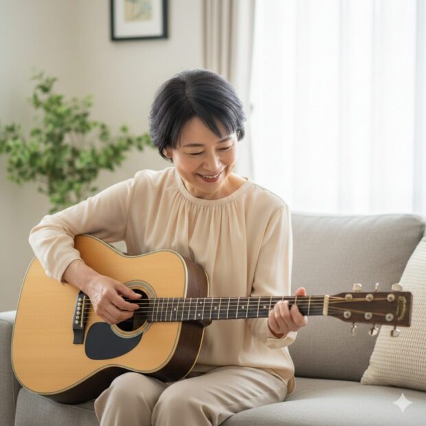 「ギターを弾いてみたいけれど、もうこの歳だし…」「今さら始めても、指も動かないだろうし遅すぎるよね」