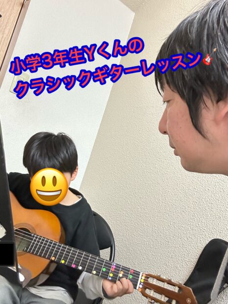 今回は、小学3年生 Yくん のクラシックギターレッスンの様子をご紹介します。