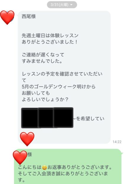 体験レッスン後にいただいたご連絡がこちらです👇