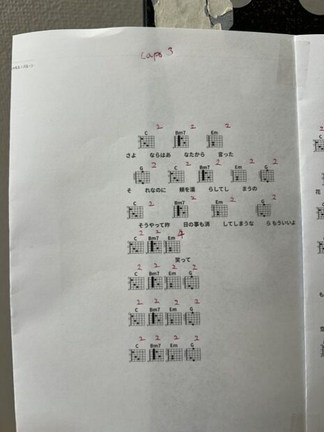 最初はBm7コードが押さえられず音が出ませんでしたが、