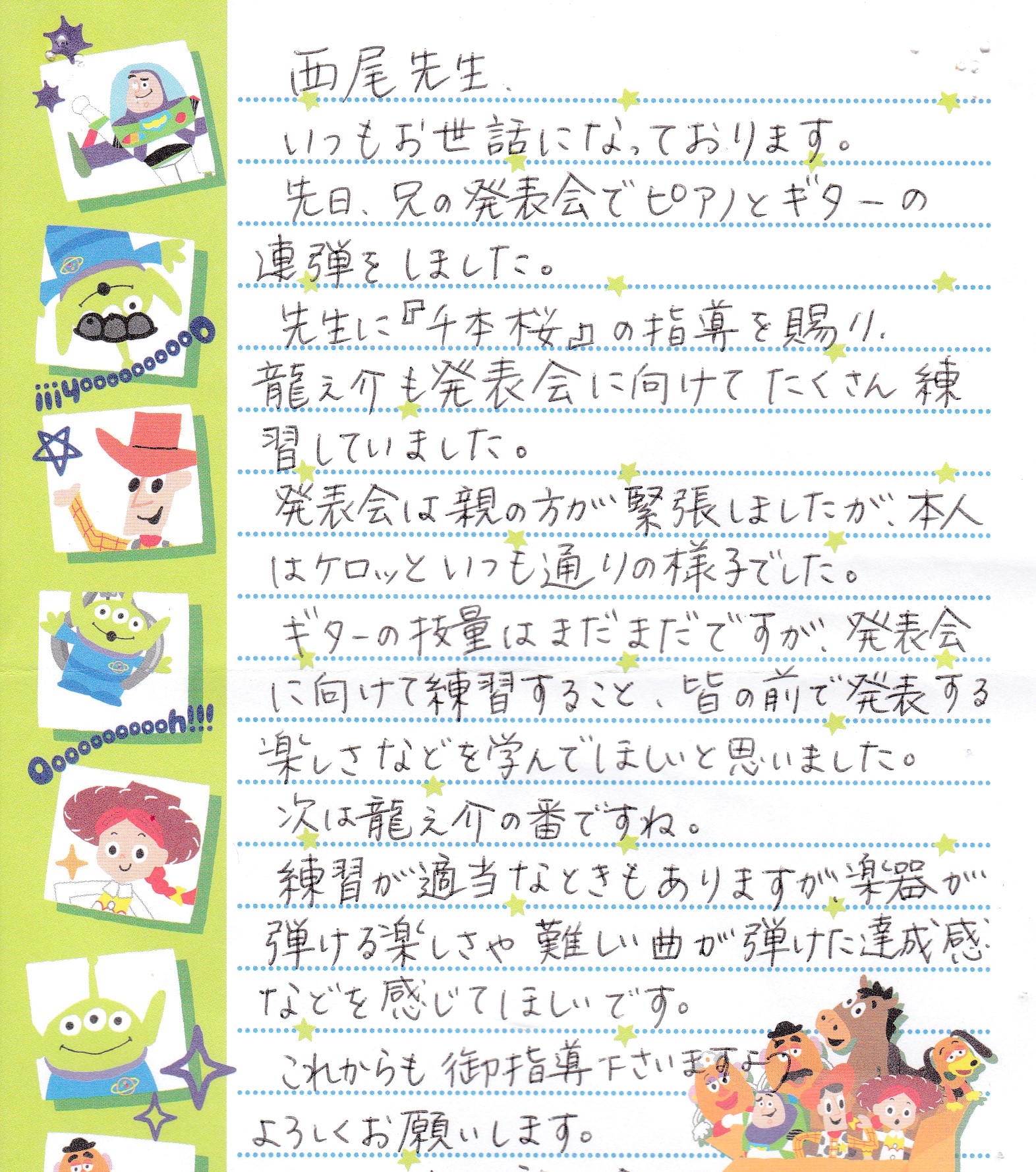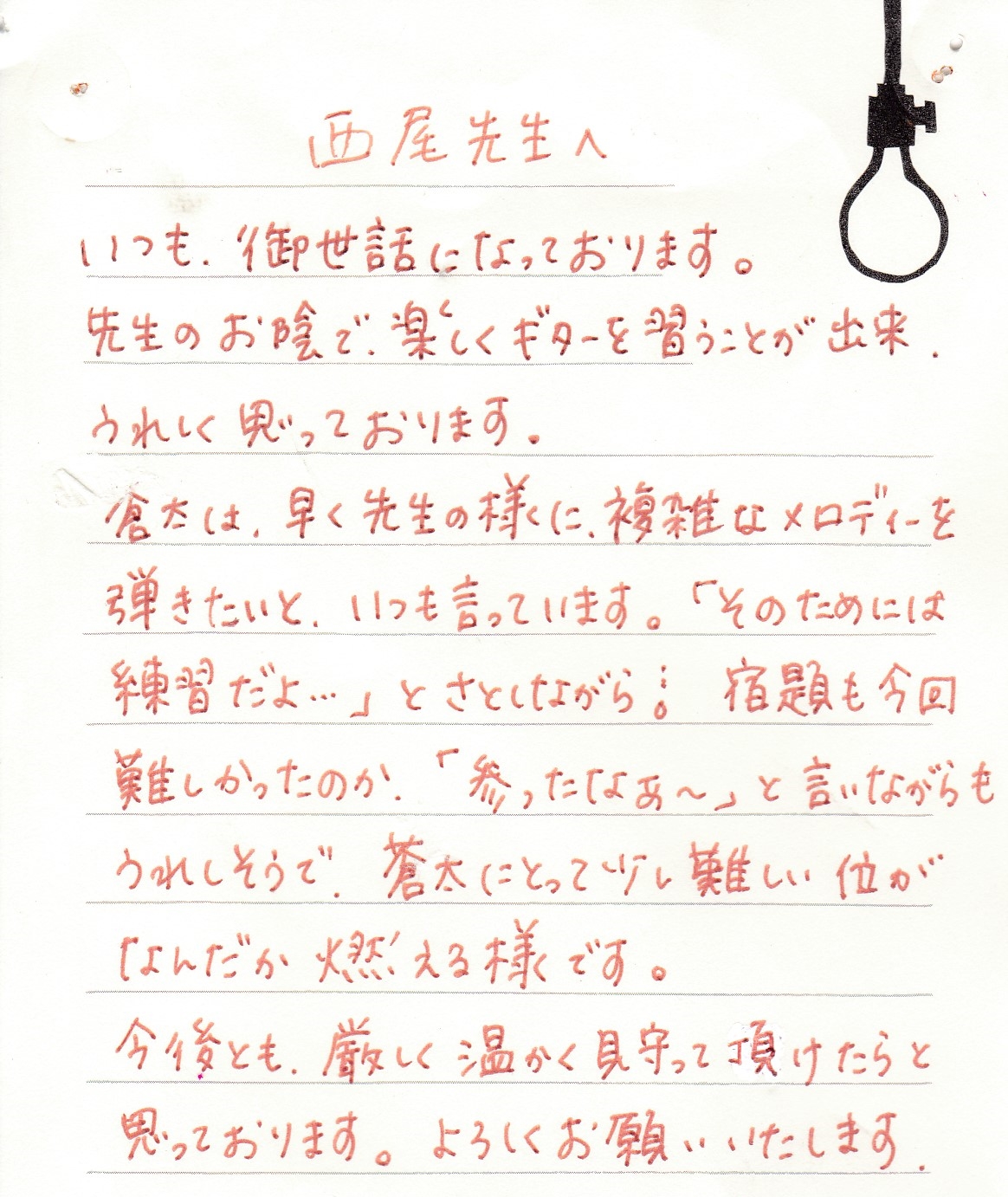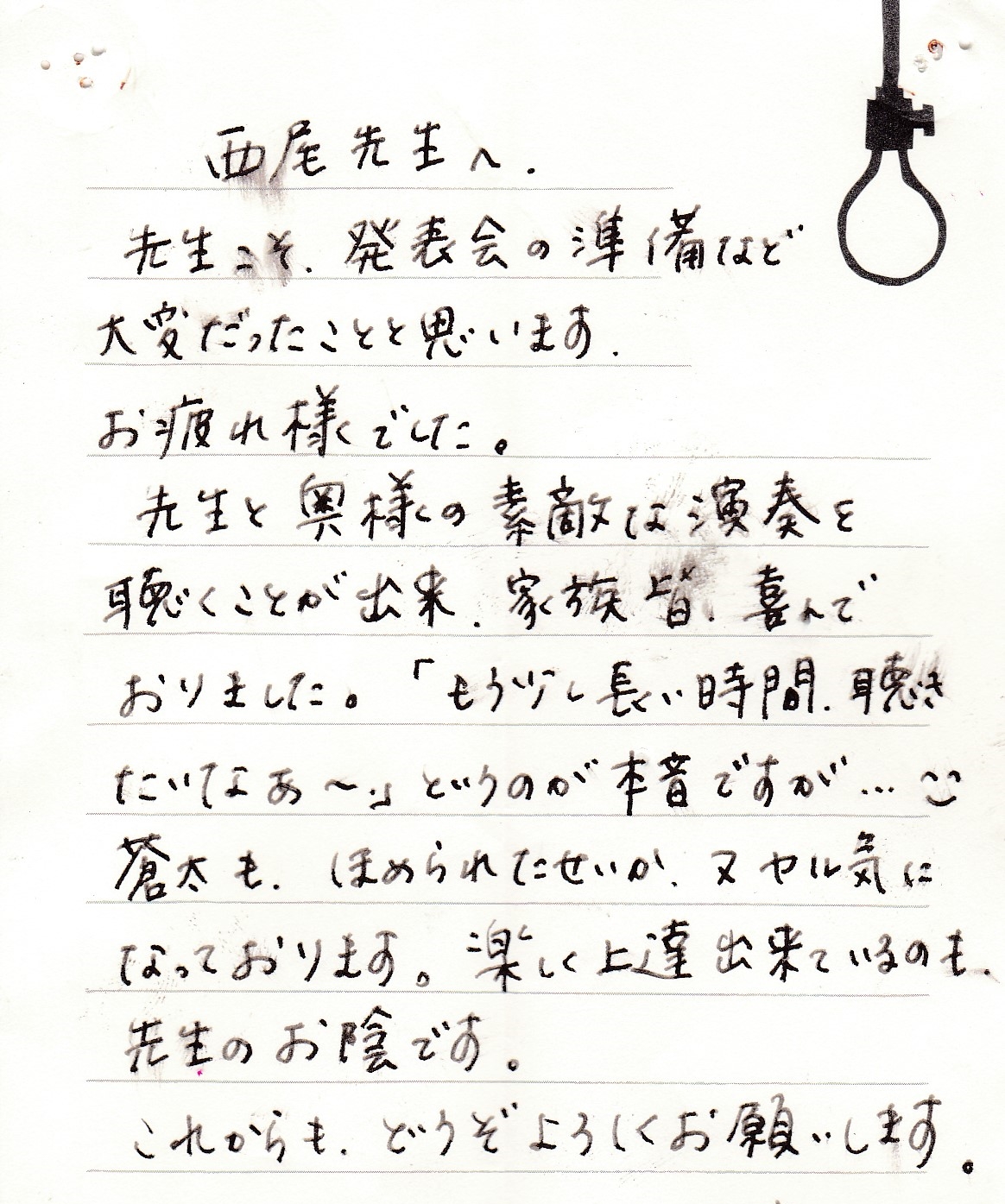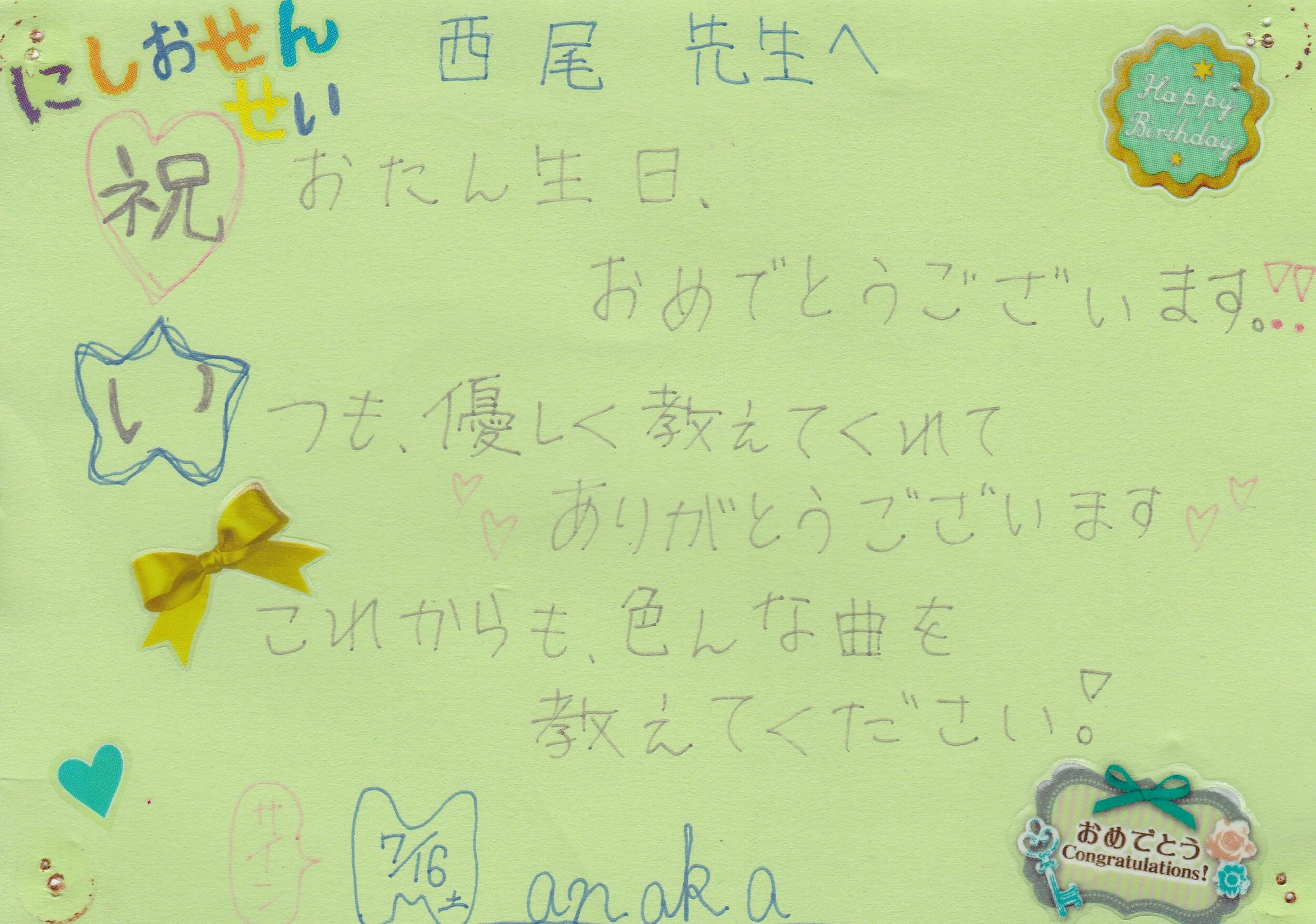 生徒さんからのお手紙 生徒さんから頂いたお手紙を掲載させていただきます。(※生徒さんの許可を得て掲載しています)・スマホで見る場合、画像をタップすると別ページに行き、もう一度画像をタップすると拡大表示されます。・パソコンで見る場合はマウスを画像の真上に置き、左クリックすると別ページに行き、もう一度画像を左クリックすると拡大表示されます。