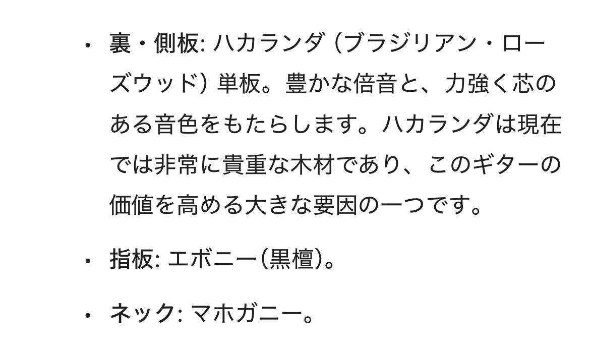 横・裏:ローズウッド 単板