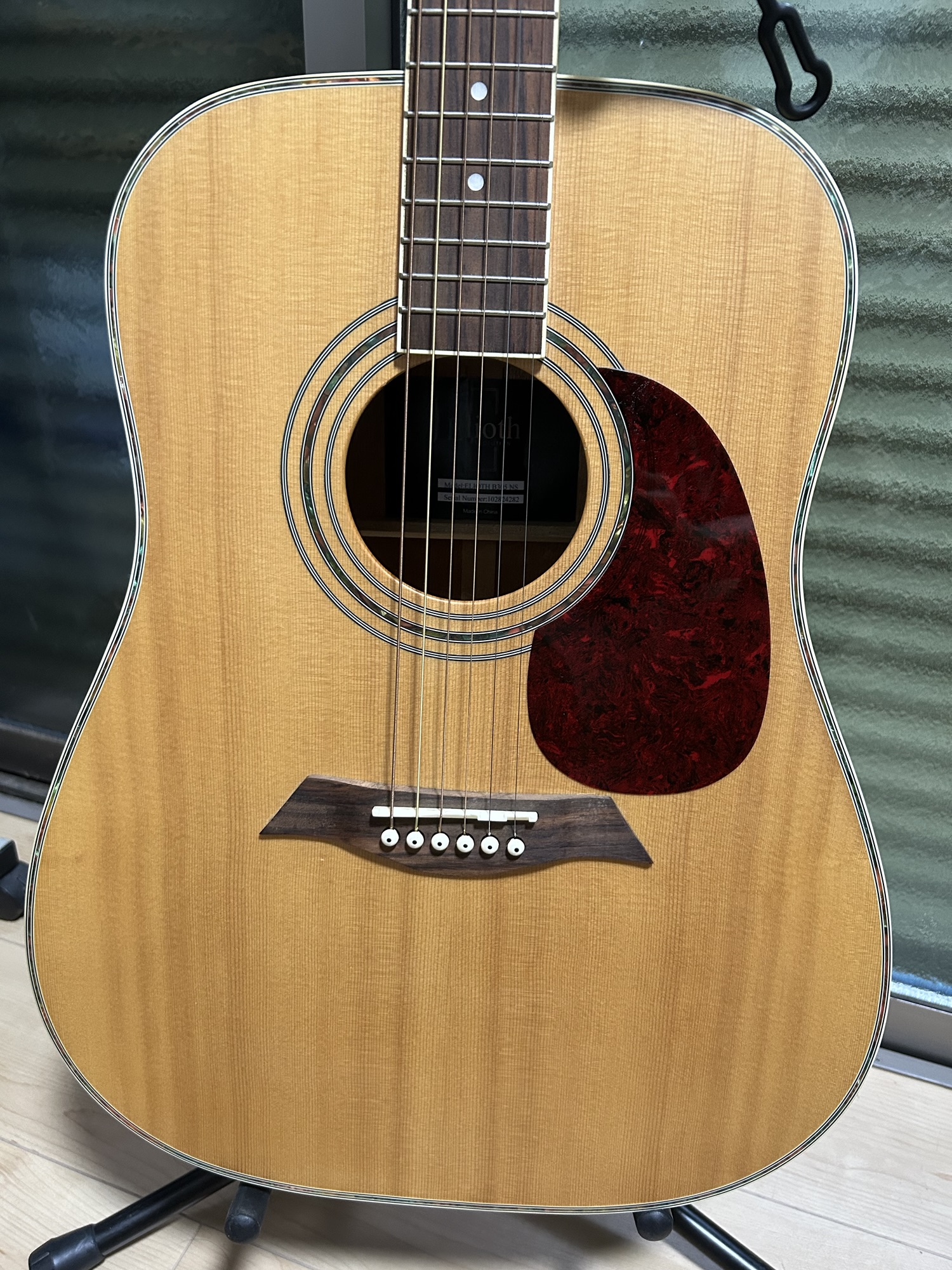 ピックガードにピックのスリ傷がありますが、殆ど目立ちません。ボディーに打痕、割れ、クラックは一切ございません。非常に綺麗なアコースティックギターです。