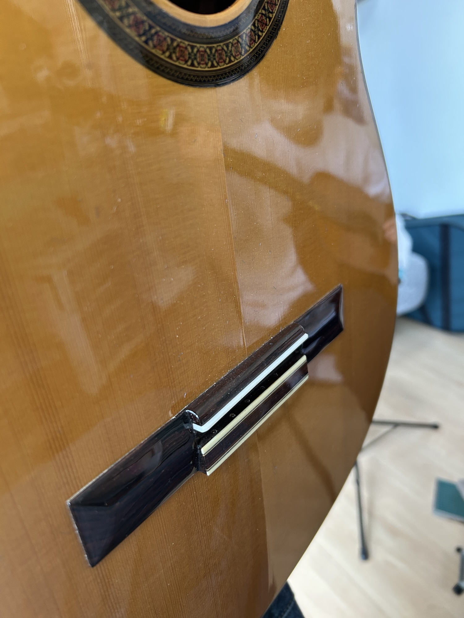 ギター、ウクレレブリッジ外れ修理