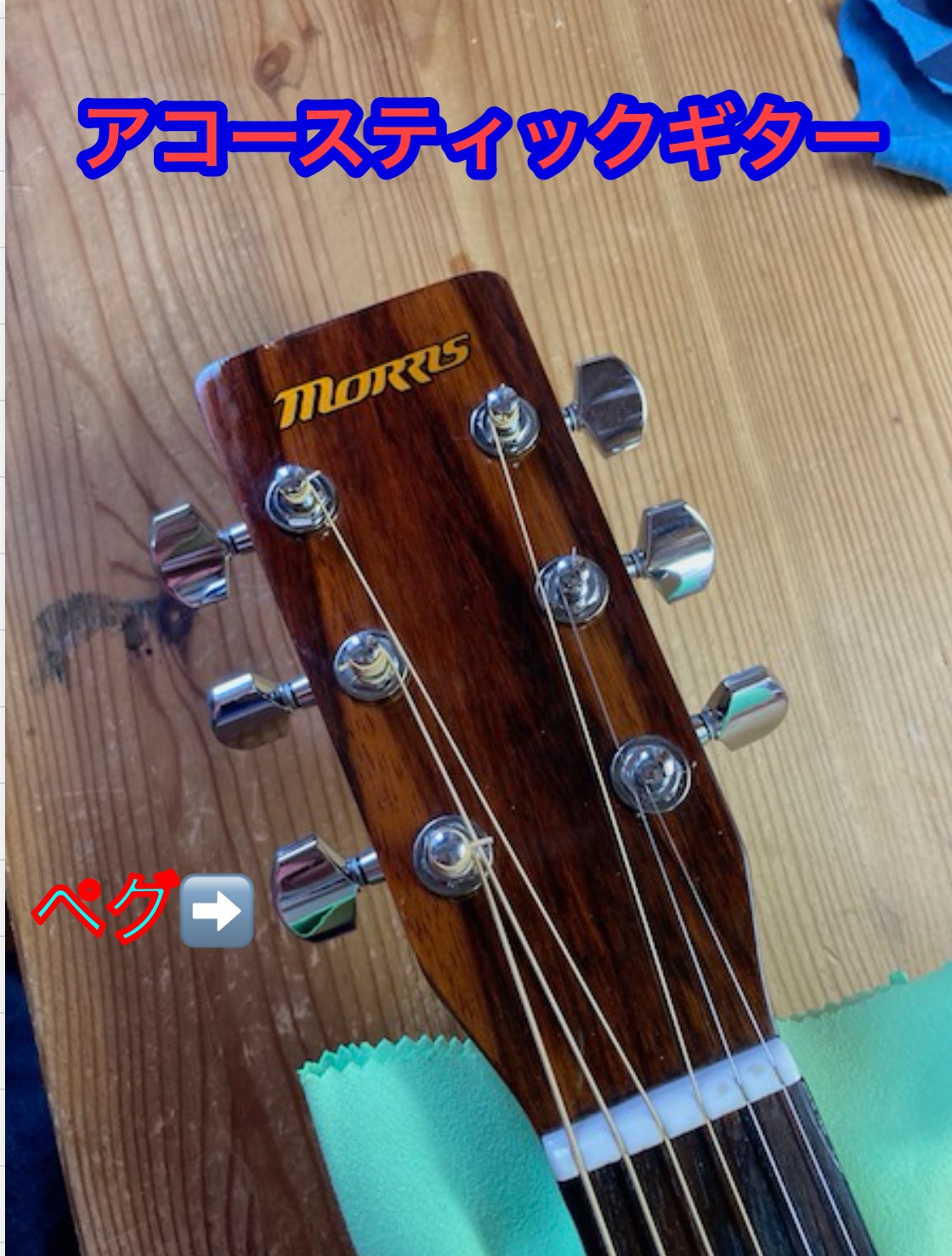 ペグとは糸巻、すなわちギターの弦を回す部分の機械を指します。下記の画像をご覧下さい↓